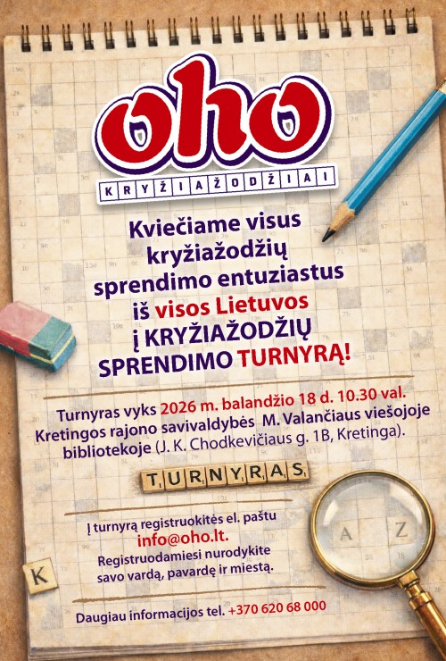 Šiemet „oho“ kryžiažodžiams – 25 metai. Šio jubiliejaus proga šeštadienį surengtas kryžiažodžių sprendimo turnyras, į kurį susirinko dalyviai iš visos Lietuvos. Kaune esančio viešbučio „Viktoria hotel“ konferencijų salė buvo beveik pilna, tačiau vyravo visiška tyla. 72 turnyro dalyviai susikaupę sprendė vieną užduotį po kitos. Dauguma entuziastų – jau patyrę tokių renginių dalyviai, tačiau buvo ir naujokų. Visus čia atviliojo azartas bei noras išbandyti proto jėgas ir gerai praleisti laiką.